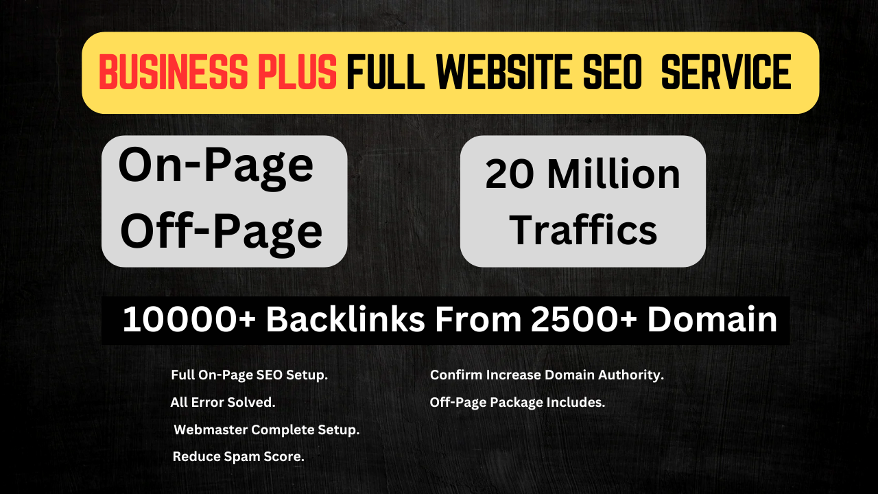 Boost your website’s rankings and traffic with our Business Plus Full Website SEO Service. This all-in-one SEO package is designed to enhance your online presence with comprehensive On-Page and Off-Page SEO strategies.
